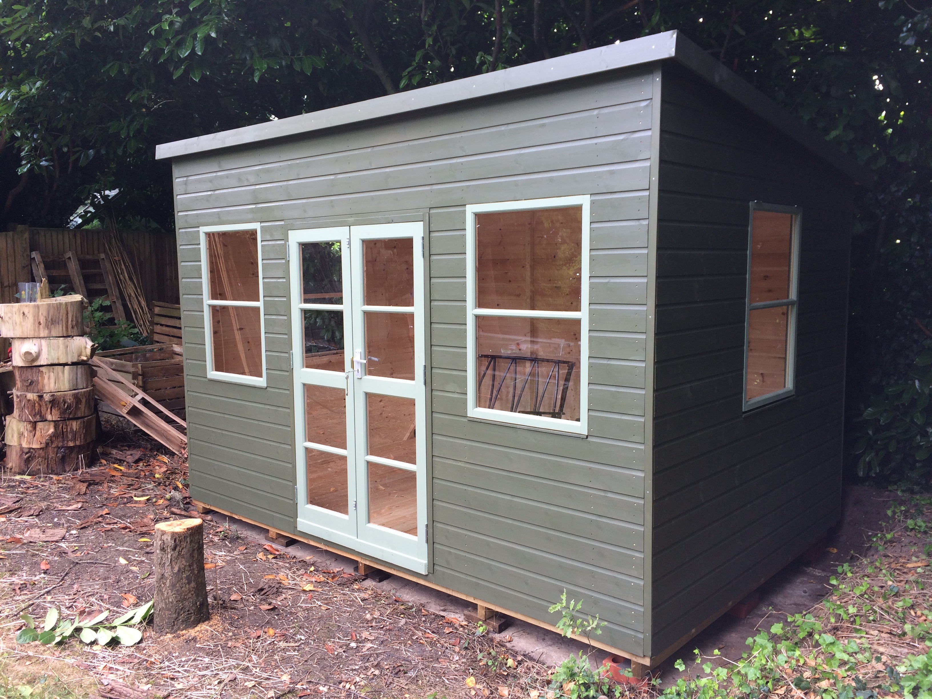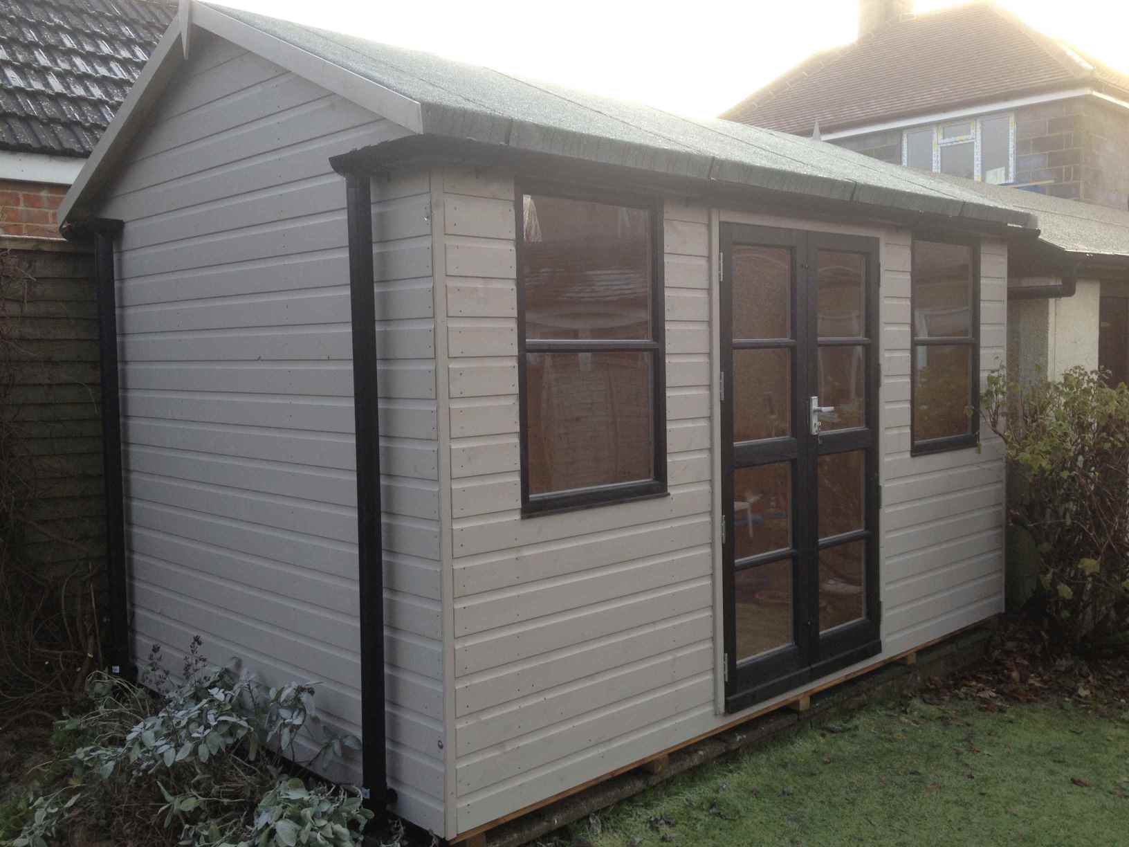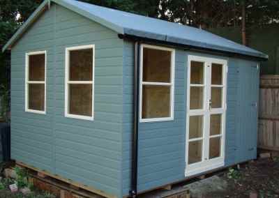 Deluxe Studio 12×10 with Tilford Doors & Windows, Heavy Felt, Guttering and Painted Finish.