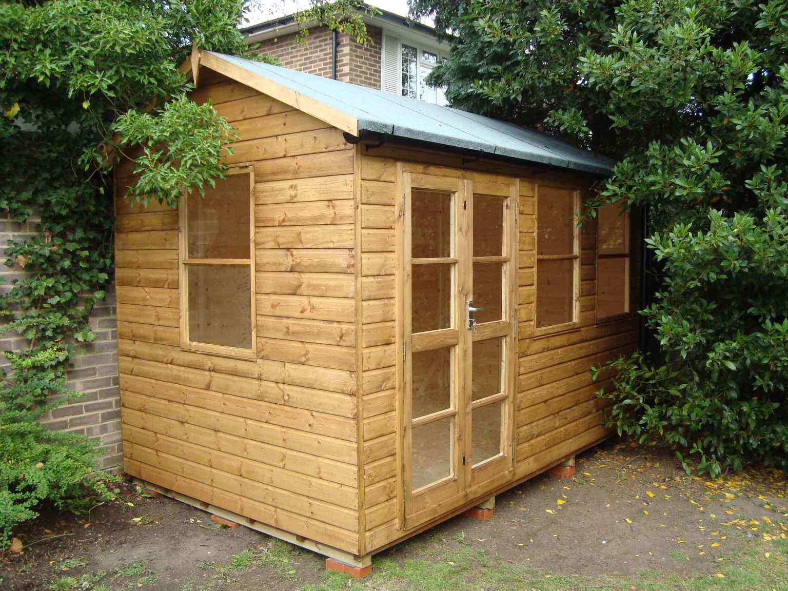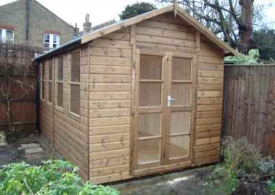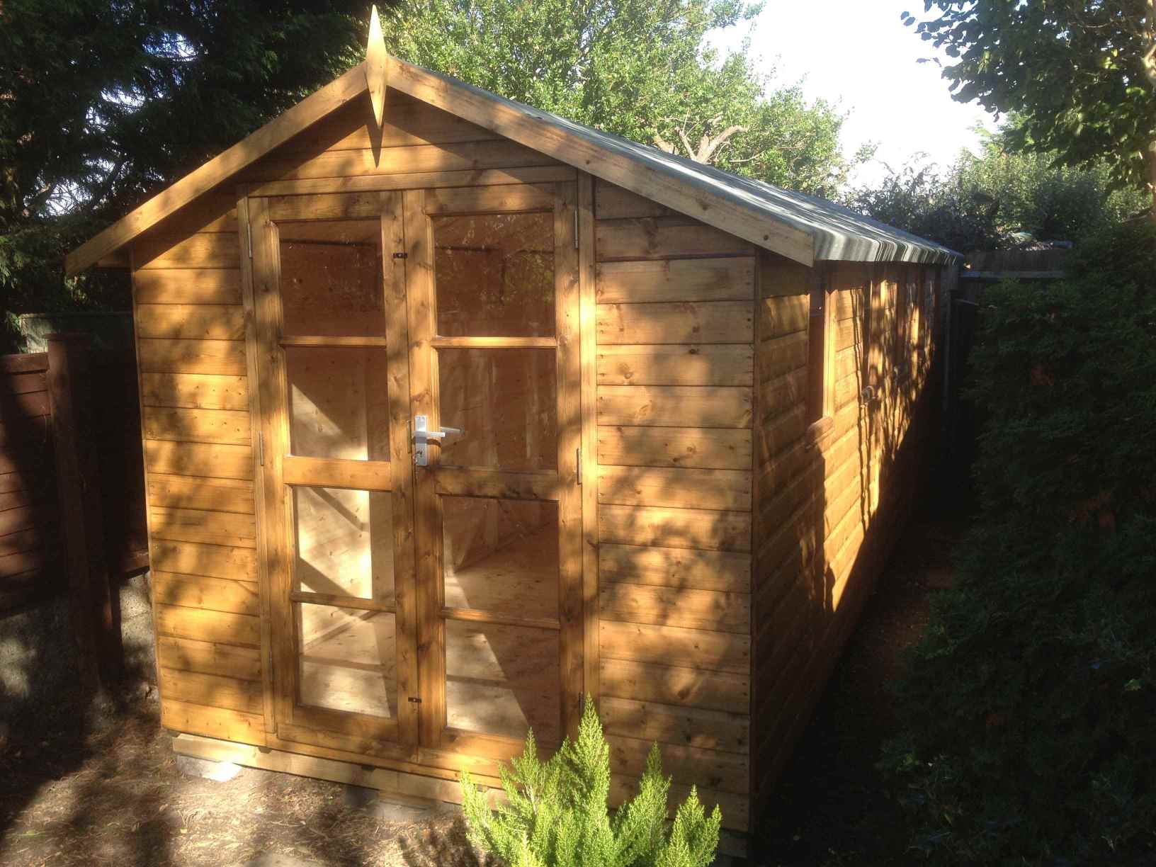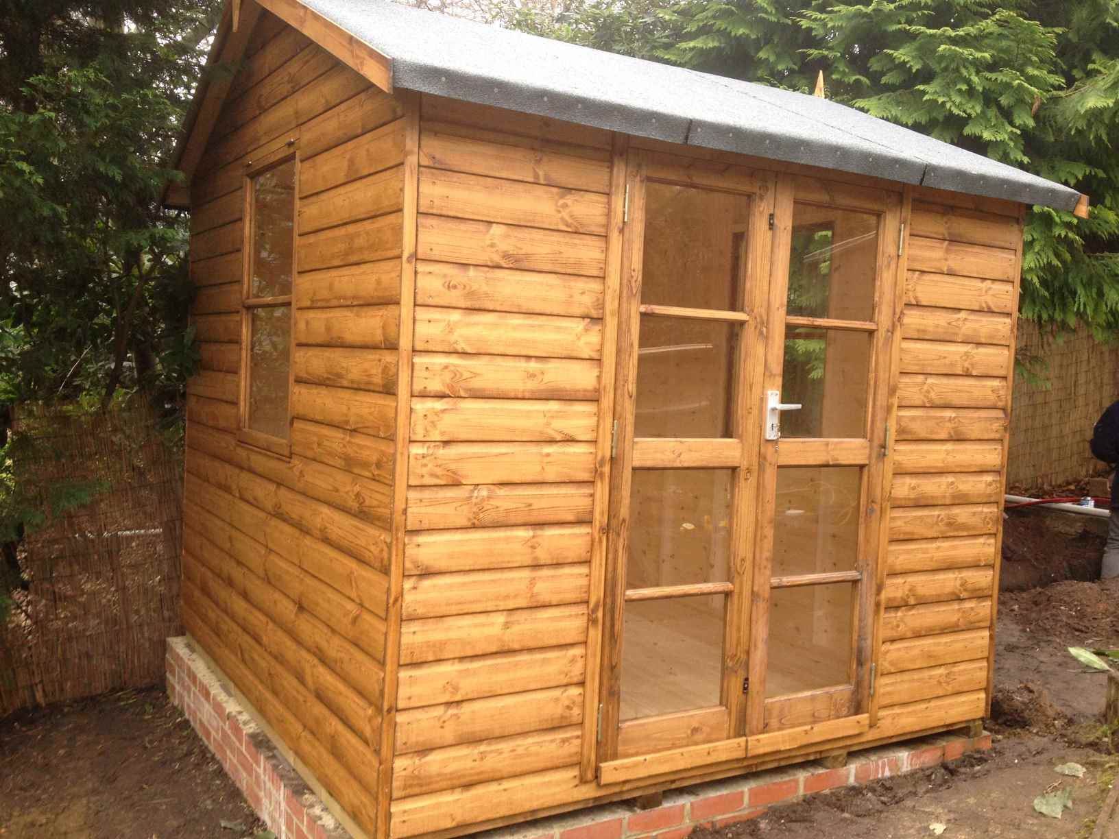 Deluxe Studio 14×10, Heavy Torch-On Felt, 6mm Ply Lined and Insuulated, Gutter & Downpipes, Shades Finish.