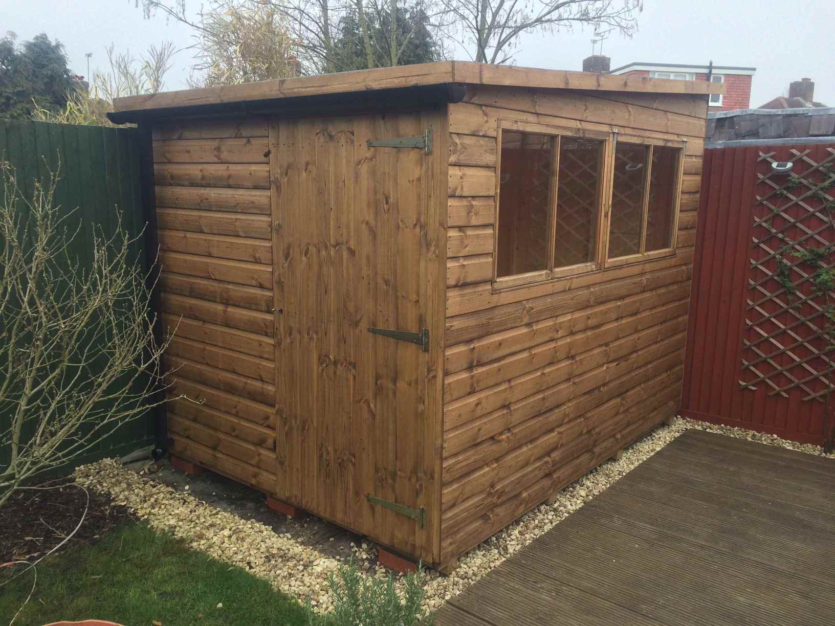 Deluxe Pent 7×9 with Reverse Roof Slope Extra height and Guttering