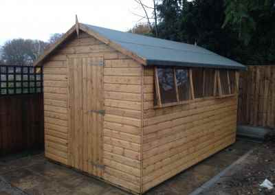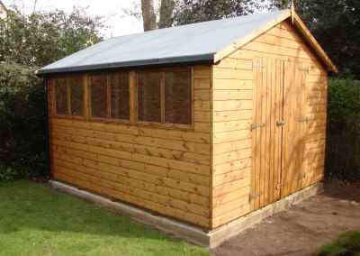 Since all gardens and all requirements aren’t the same, choose from our comprehensive range of Apex and Pent Sheds/Workshops manufactured to any size, style, shape and configuration to suit your own needs including lean-tos and odd shape buildings to fill up unusable space. All sheds come fully tongue and grooved throughout.