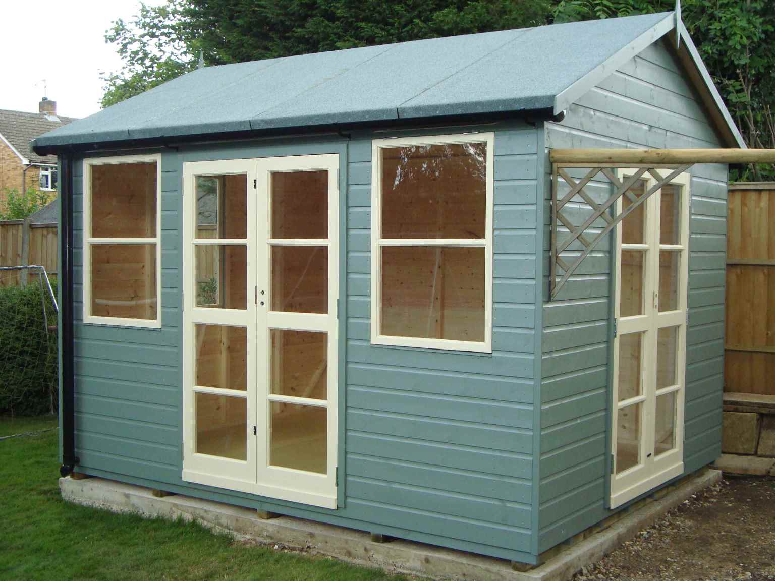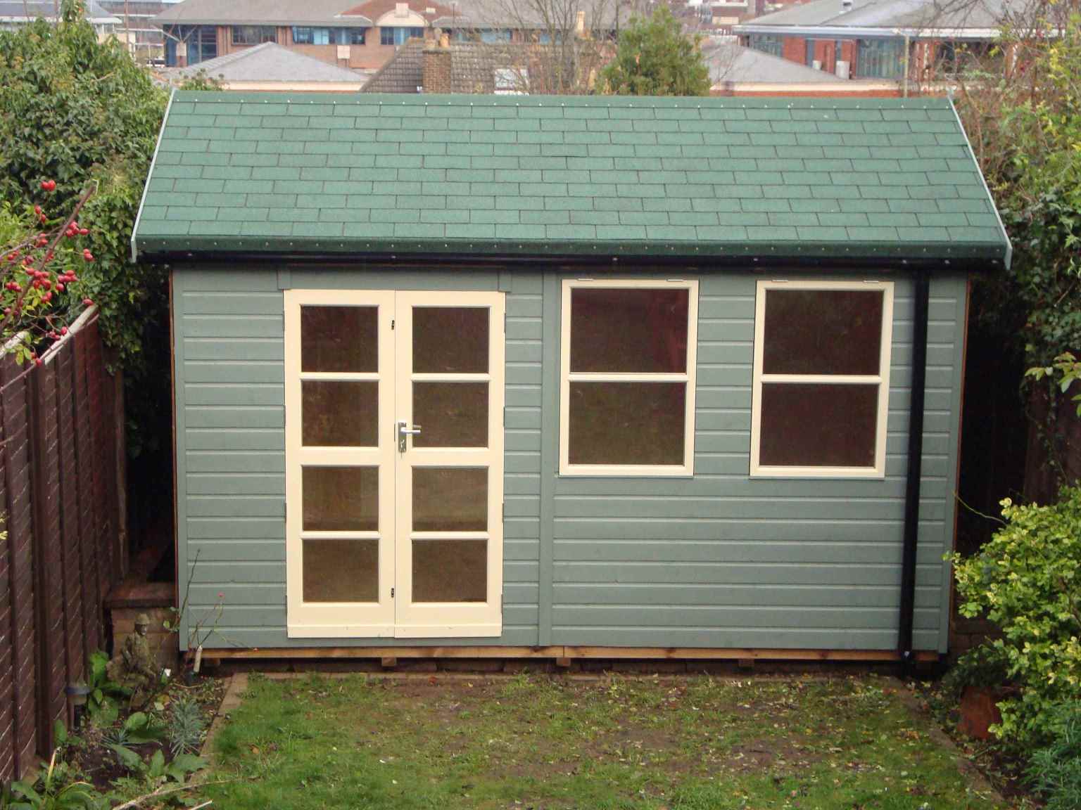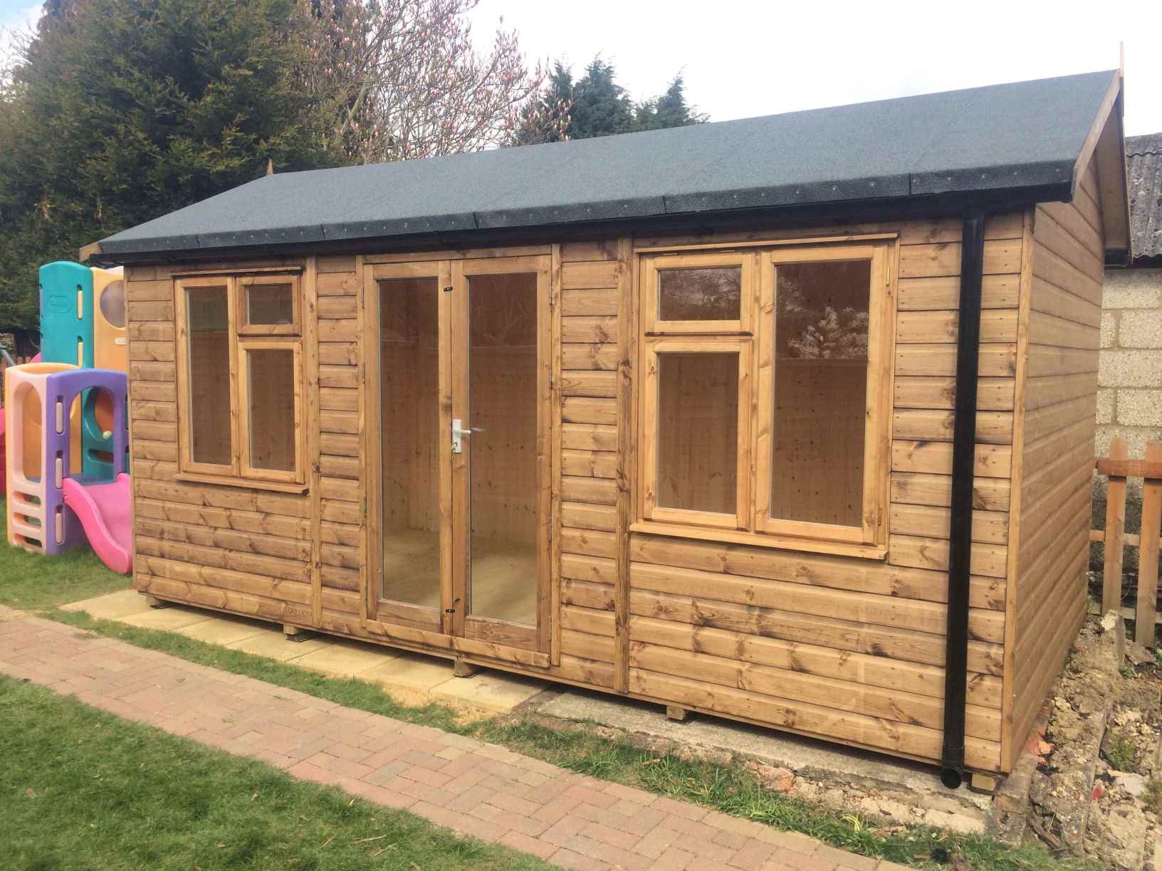 Deluxe Studio 12×10 with Tilford Doors & Windows, Heavy Felt, Guttering and Painted Finish.