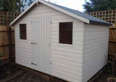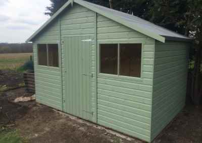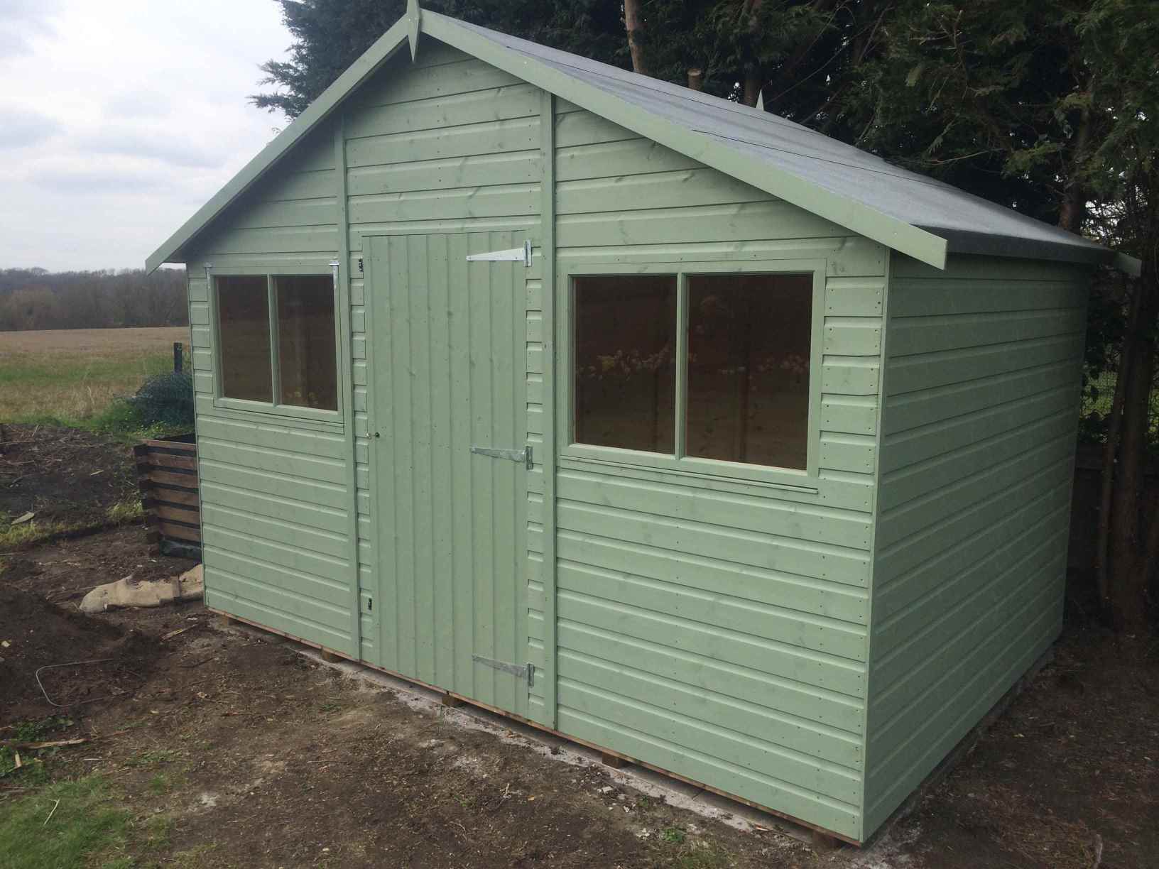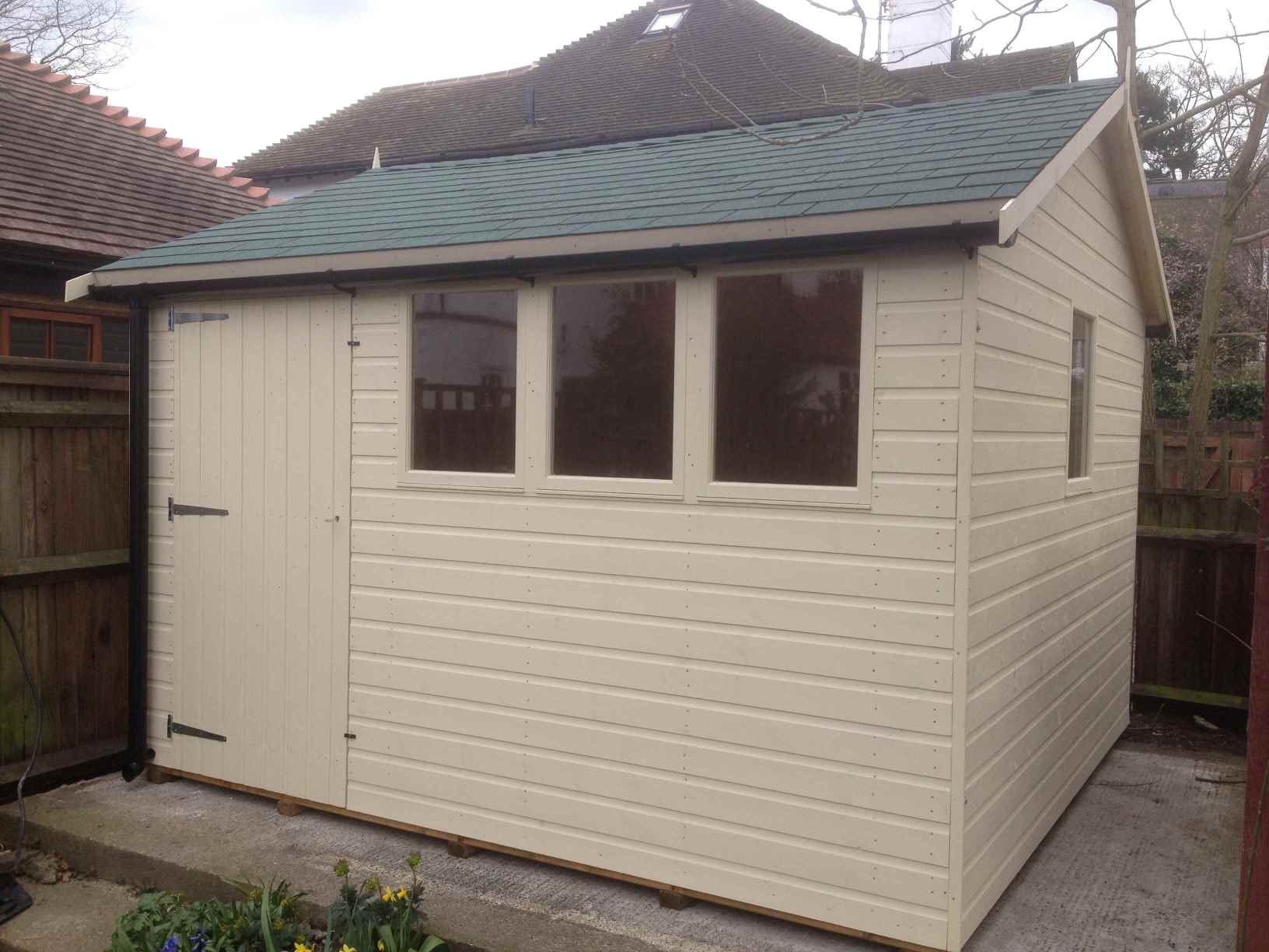 Deluxe Apex 11×9 with Green Felt Tiles, Guttering and Painted Finish.