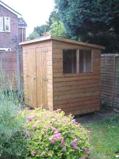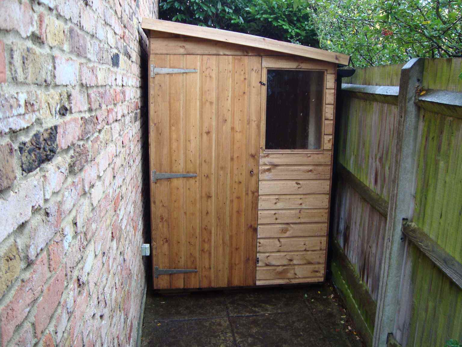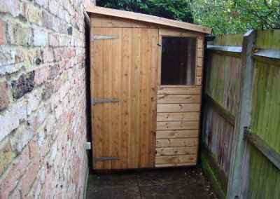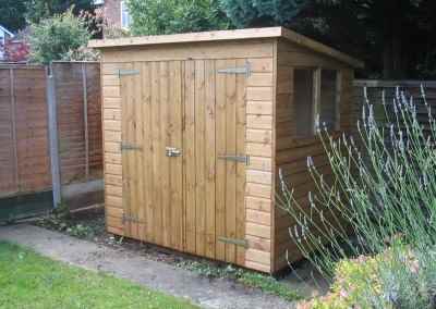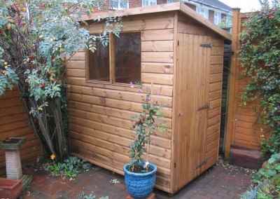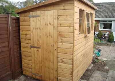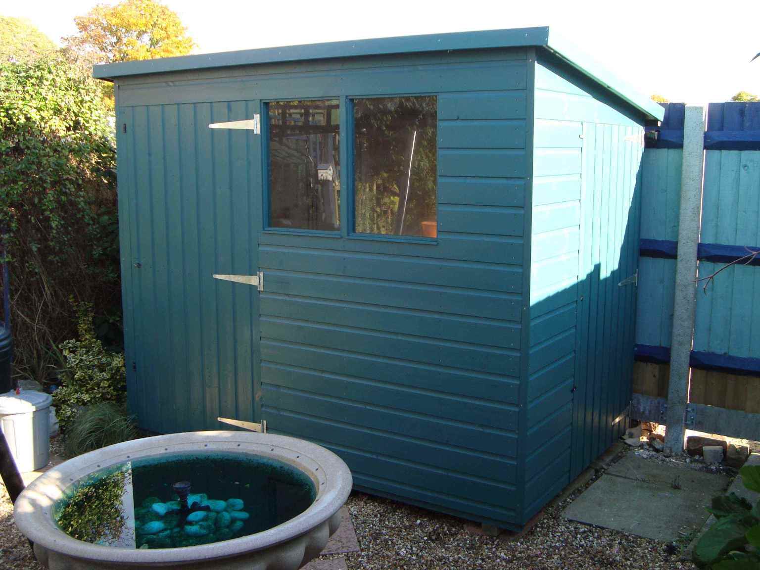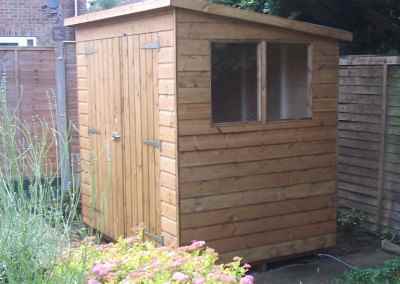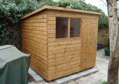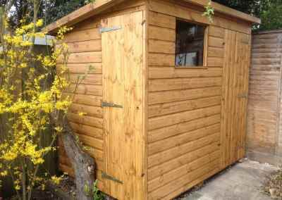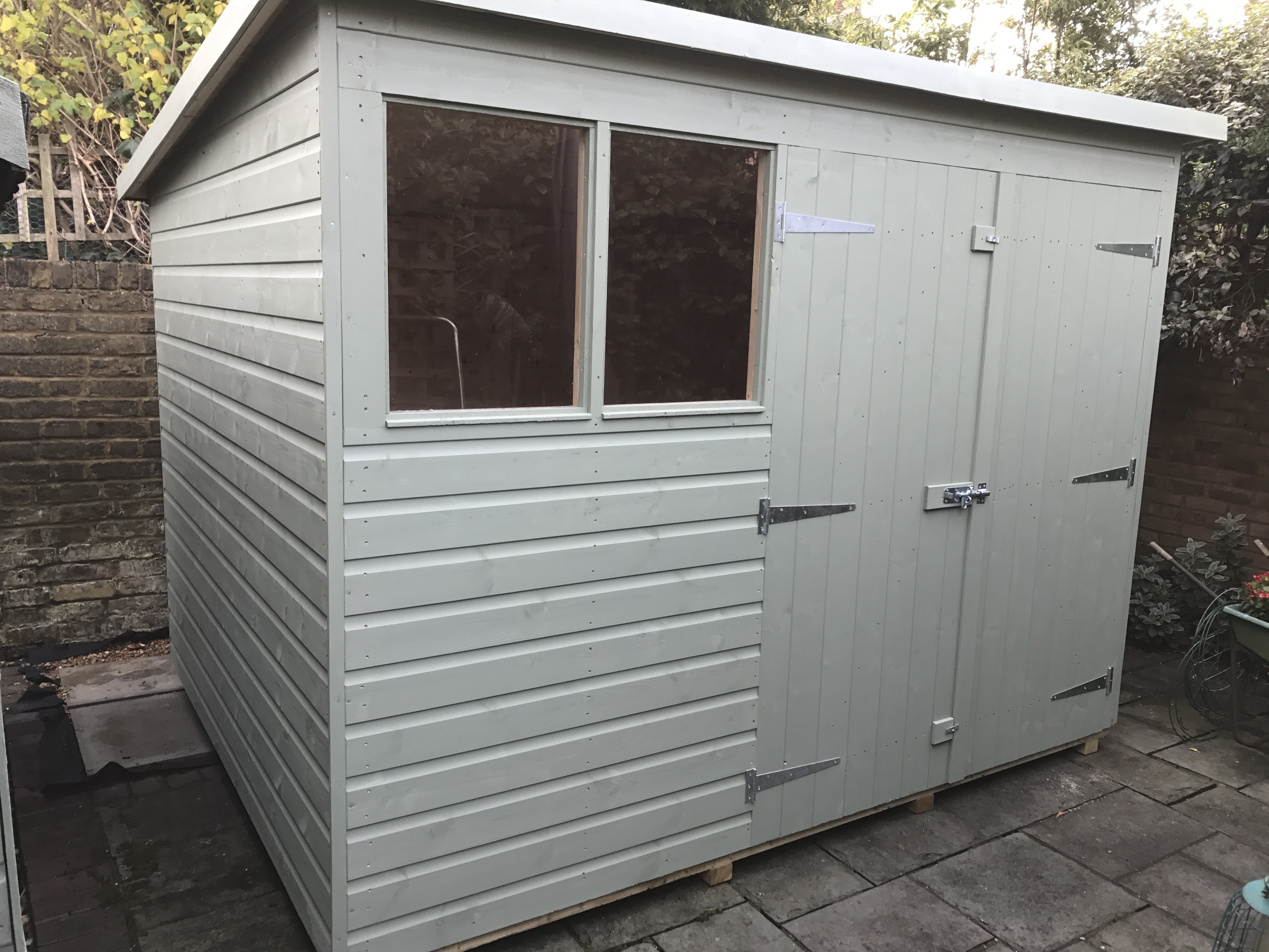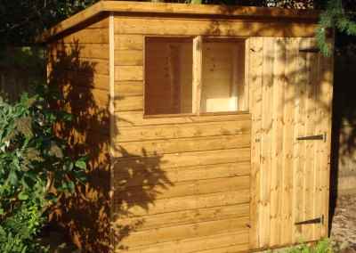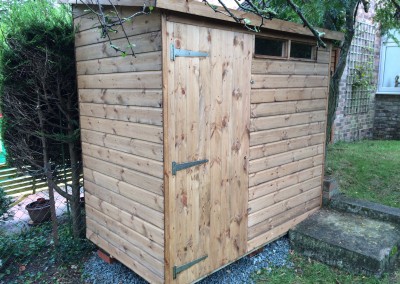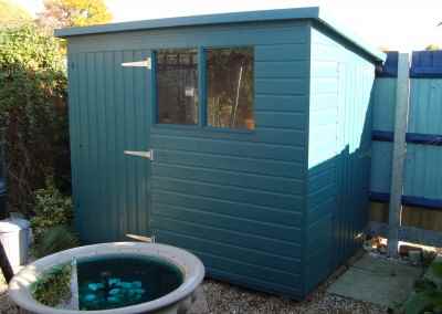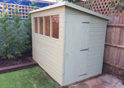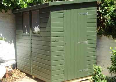 Super Pent 6×5, reverse roof slope, in smaller parts for limited access and Old English Green Finish